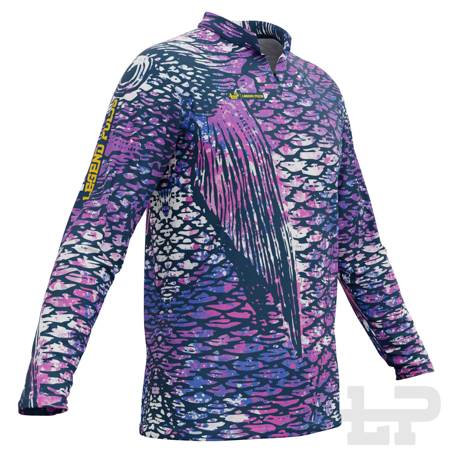 The Men's Purple Scales Long Sleeve Fishing Shirt combines our soft sweat-wicking PolyTechTM fabric with a comfortable classic fit for the perfect fishing jersey whether you are on the water, or knocking back a beverage (or two).